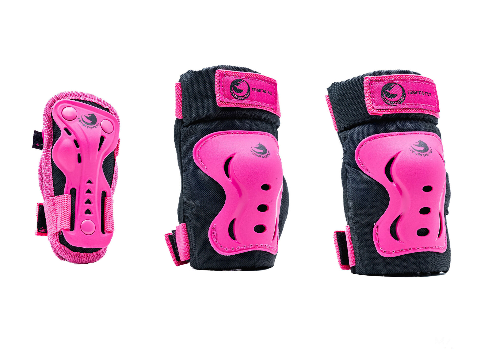 Novedoso kit de protección con diseño infantil, ergonómicamente diseñado para brindar protección completa en todas tus extremidades (codos, rodillas, muñecas y manos). Ajustable mediante correas de velcro tipo venda, ofrece mayor comodidad y seguridad al deportista. Disponible en tallas XS, S, M y L