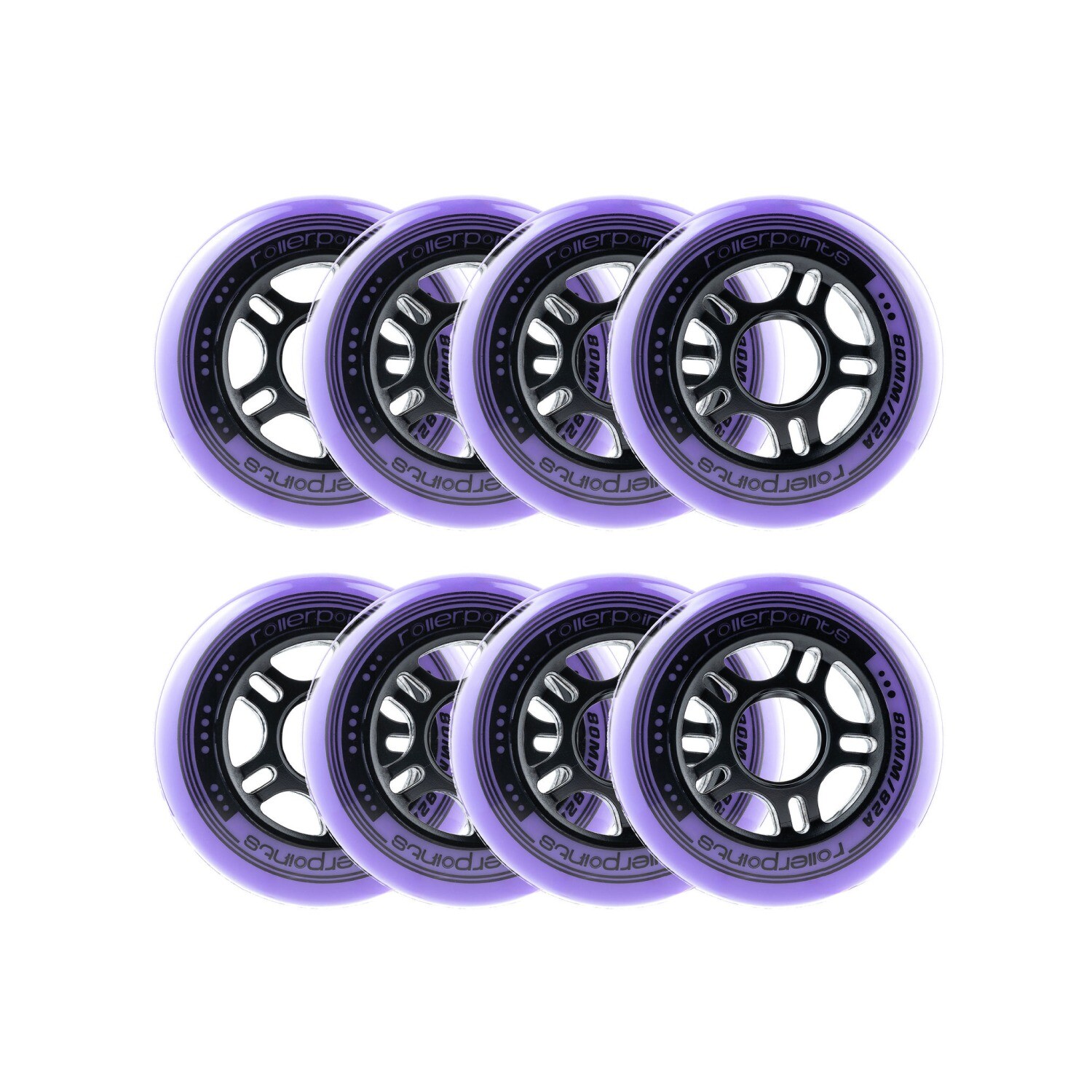 Con una dureza de 82A, están disponibles en tamaños de 64, 70, 72, 76, 80, 84, 90, 100 y 110 mm, en