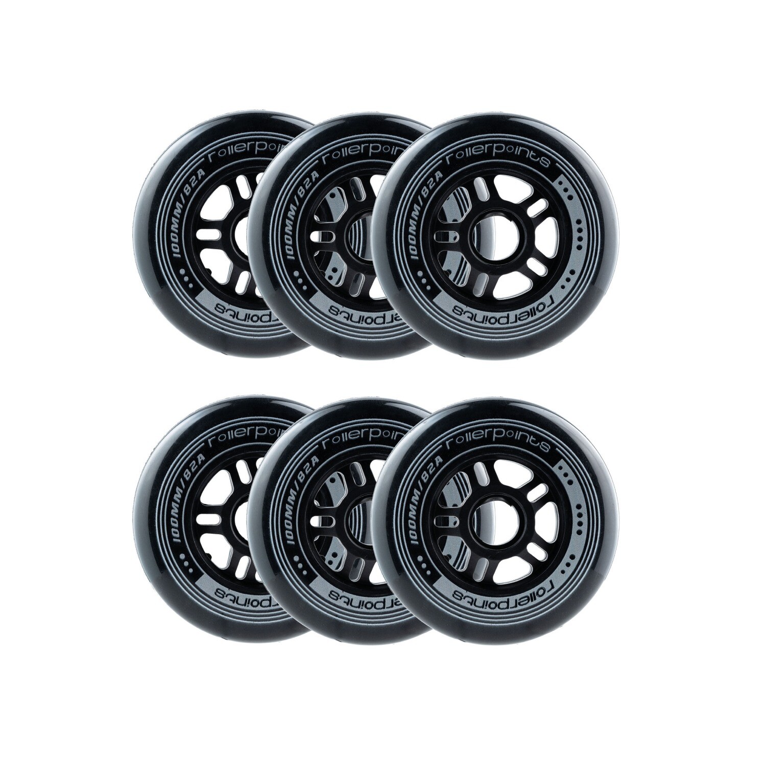 Con una dureza de 82A, están disponibles en tamaños de 64, 70, 72, 76, 80, 84, 90, 100 y 110 mm, en